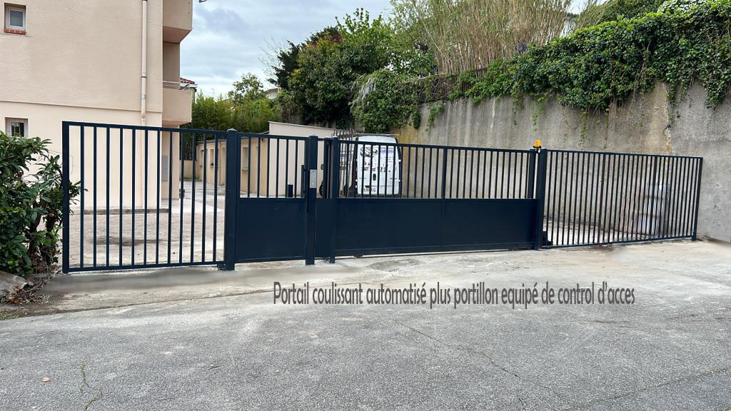 Portail motorisé combiné avec portillon équipé de control d’accès
