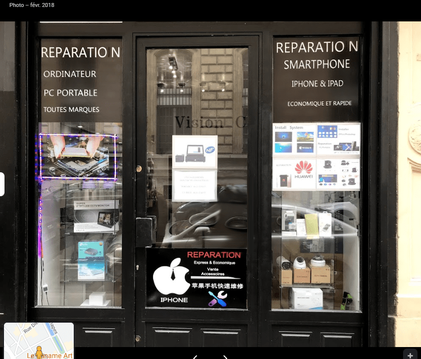 Il était une fois à Paris, dans le 10ème arrondissement, au 4 rue Yves Toudic, un magasin qui faisait des réparations de smartphone, PC, tablette, MAC pro, IPAD… et service de restauration après sinistre des données. Et on vend dash camera pour voiture, camera v starcam, Hikvision 4 CH DVR CCTV Kit système de sécurité & 4 x Sony 2,4 MP CMOS Tvi 1080p Full HD Caméras dôme…réparation, rachat, vent et dépôt vent
